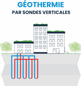 Cette technique capte la chaleur du sol à l’aide de tubes verticaux remplis d’un fluide caloporteur.